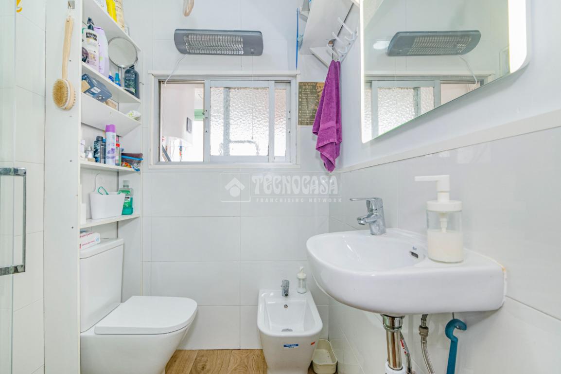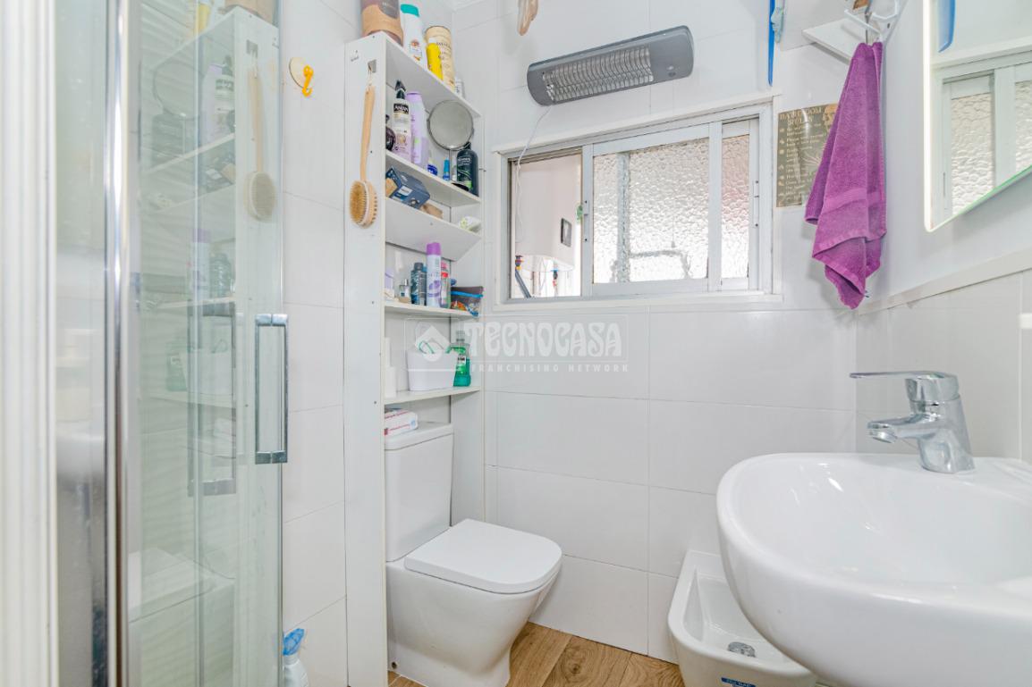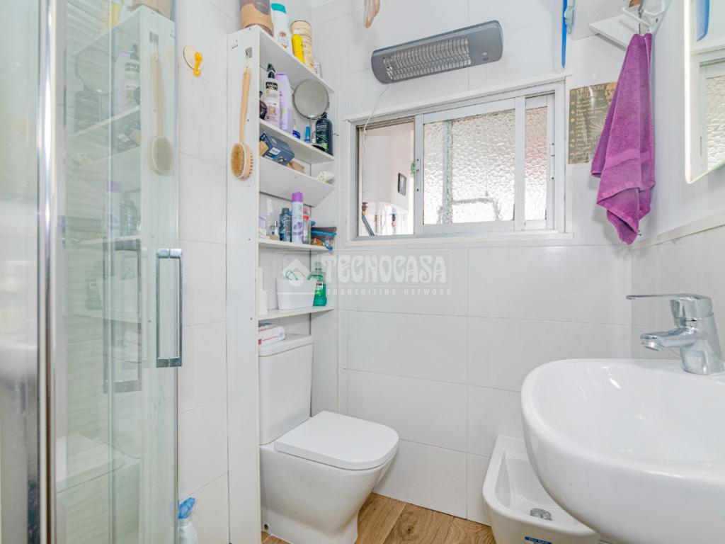 Baño reformado, moderno y funcional, con plato de ducha.